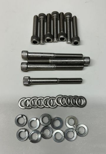 Installation kit for valve covers. Includes stainless steel bolts and aluminum billet washers.